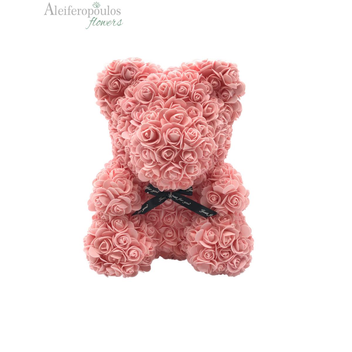 Μεγάλο αρκουδάκι από τεχνητά τριαντάφυλλα Rose Bear Σομόν